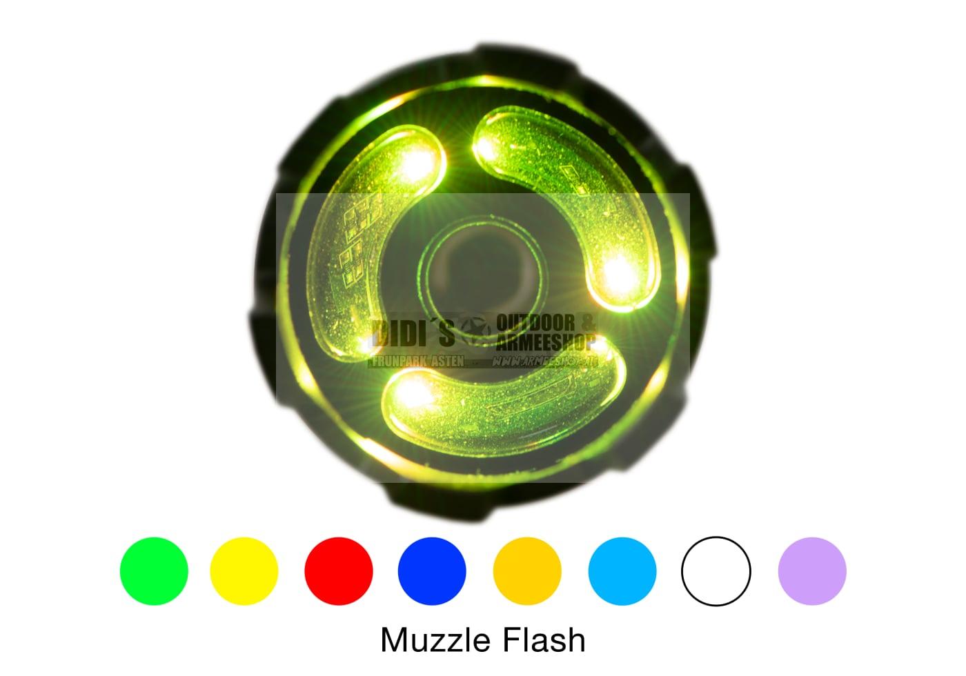 Als Besonderheit kann dieser Tracer 8 Verschiedene Farben als Muzzle Flash generieren. Die verschiedenen Farben können so zum Beispiel zur Team Indikation genutzt werden.