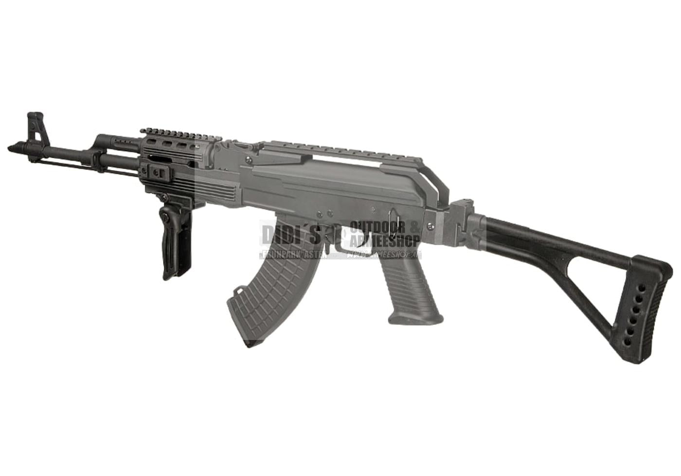 Diese AEG ist aufgrund ihres extrem modernen Designs ein wahrer Blickfänger und Zeugnis des Trends, russische Waffen mit westlichem Zubehör auszustatten. Die Waffe ist aufgrund ihrer sehr hohen Schussleistung nicht für kurze Distanzen geeignet und sollte mit entspechender Rücksichtnahme eingesetzt werden. Die massive Vollmetallkonstrutkion ist sehr robust, die Verarbeitung ist für eine Waffe aus chinesischer Produktion vergleichsweise sehr gut. In Sachen Zuverlässigkeit gibt es an dieser AEG ebenfalls nichts zu meckern, es ist allerdings wichtig, dass ein genügend starker Akku zum Einsatz kommt.